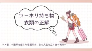 ワーキングホリデー ワーホリ2回経験者が語る|持っていく衣類の選び方 ワーホリ2回経験者が、実際に2度目の渡航で持っていった衣類を公開。服の枚数、下着の選び方、上着の失敗談、洗濯事情までリアルに解説。オーストラリアとイギリスの経験をもとに、後悔しない持ち物準備のコツを紹介します。 2026.04.06 ワーキングホリデー